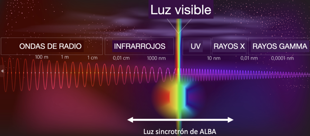 ALBA genera radiación electromagnética (infrarrojos, luz visible, ultravioleta y rayos X), acelerando electrones a una velocidad próxima a la velocidad de luz, en aplicación del efecto sincrotrón, que se descubrió casualmente en los primeros aceleradores de partículas en el siglo XX. Gracias a ALBA se puede visualizar tridimensionalmente la replicación del virus de SARS CoV-2 dentro de las células, se prueban terapias génicas contra distrofia muscular, se estudian nuevos nanofármacos contra la fibrosis cardiaca, se trabaja en el diseño de baterías recargables menos contaminantes o para mejorar paneles solares. Sirve también para investigación arqueológica, porque nos acerca a la estructura más íntima de los materiales que se extraen de los yacimientos arqueológicos o incluso de los fósiles en el interior de las rocas, sin necesidad de tener que abrirlas. Además, la línea de luz MINERVA se utiliza para caracterizar el objetivo del próximo telescopio espacial europeo de rayos X, NewAthena.